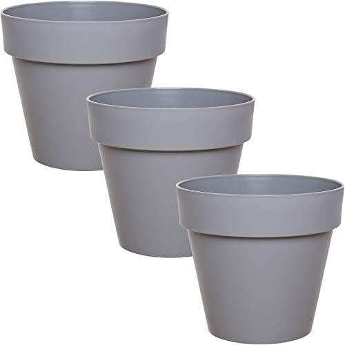 Idea Station Plastic Flower Pots 3 Pieces 14 Cm Grey Round Small Plant Pots Planter Vase Indoor Outdoor Garden Shatterproof Amazon Co Uk Garden